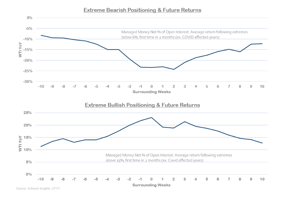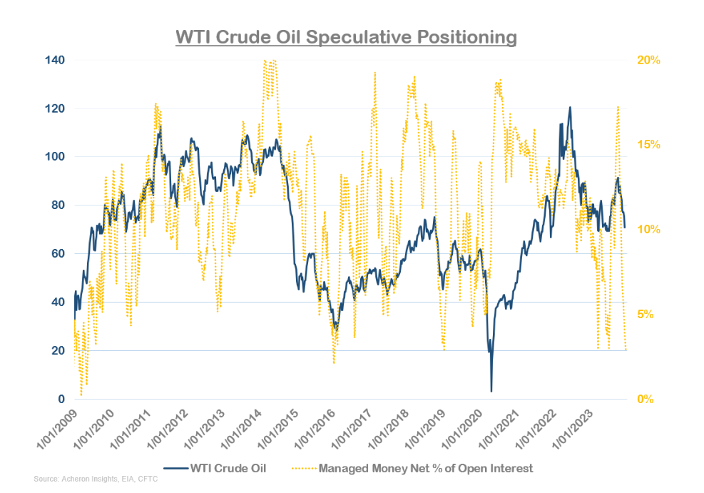 第四点,投机者对原油价格的影响不得不考虑。在10月份达到最看涨的头寸水平后,对冲基金和CTA在过去几个月里一直在抛售石油期货。目前交易者发现自己达到了十多年来最悲观的敞口水平。如此程度的极度看跌很少会导致价格进一步走低。如果市场的基本面继续朝着积极的方向发展,对冲基金和CTA的巨大购买力有很大空间推动价格上涨。