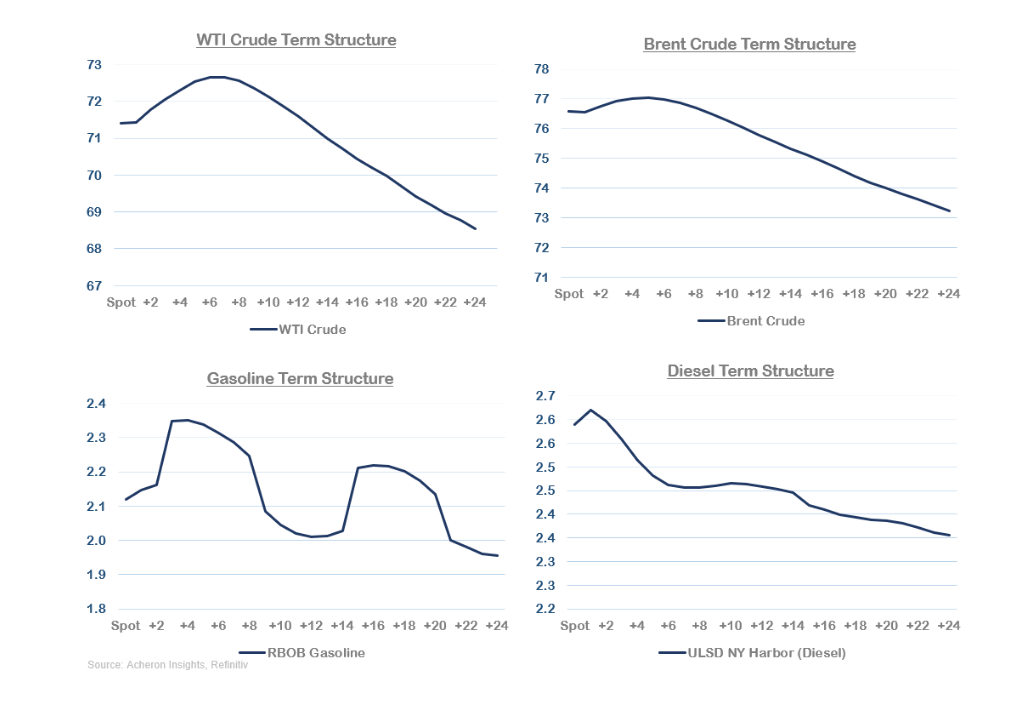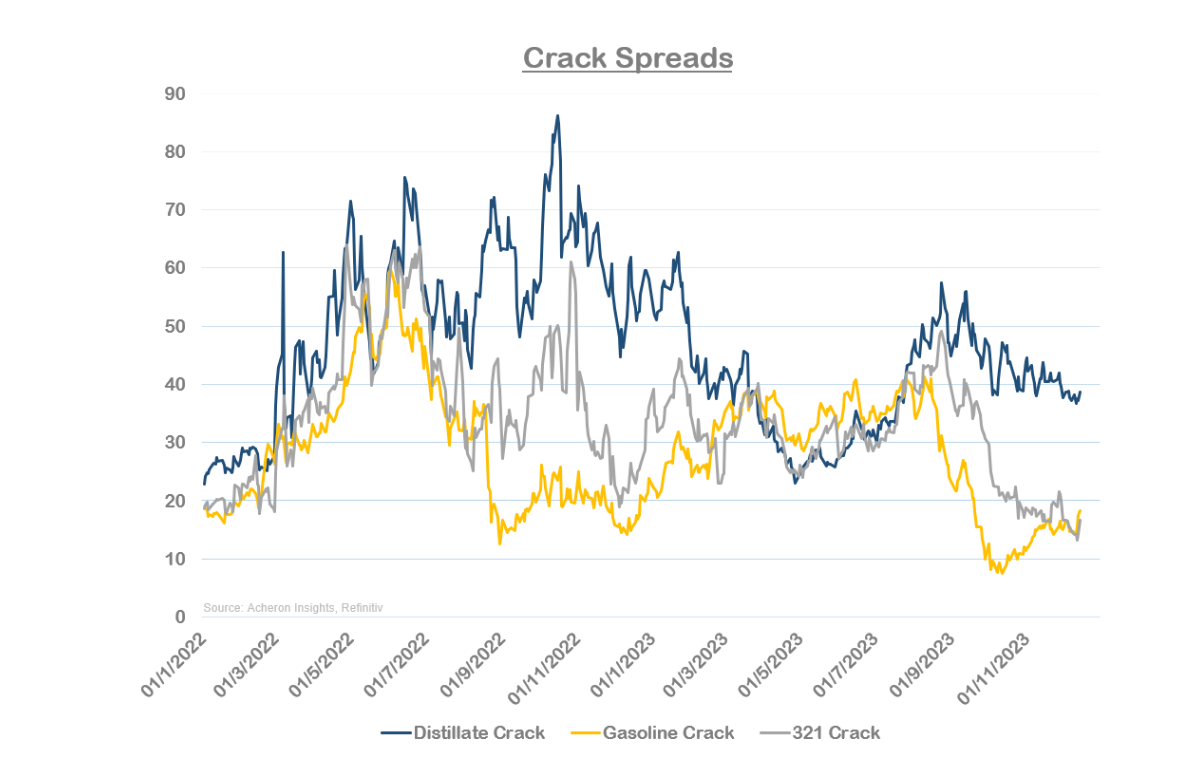 其他看跌因素中,如每年墨西哥石油生产商的石油对冲计划(Hacienda hedge)也发生在此期间。随着第四季度的到来,我们进入一年中对需求和价格都更有利的时期,上述不利因素消失了。
