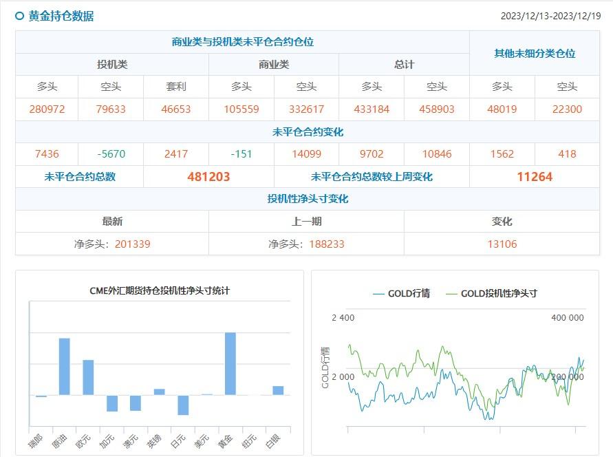 标题:CFTC持仓:1219当周投机者看多黄金原油,看空美债