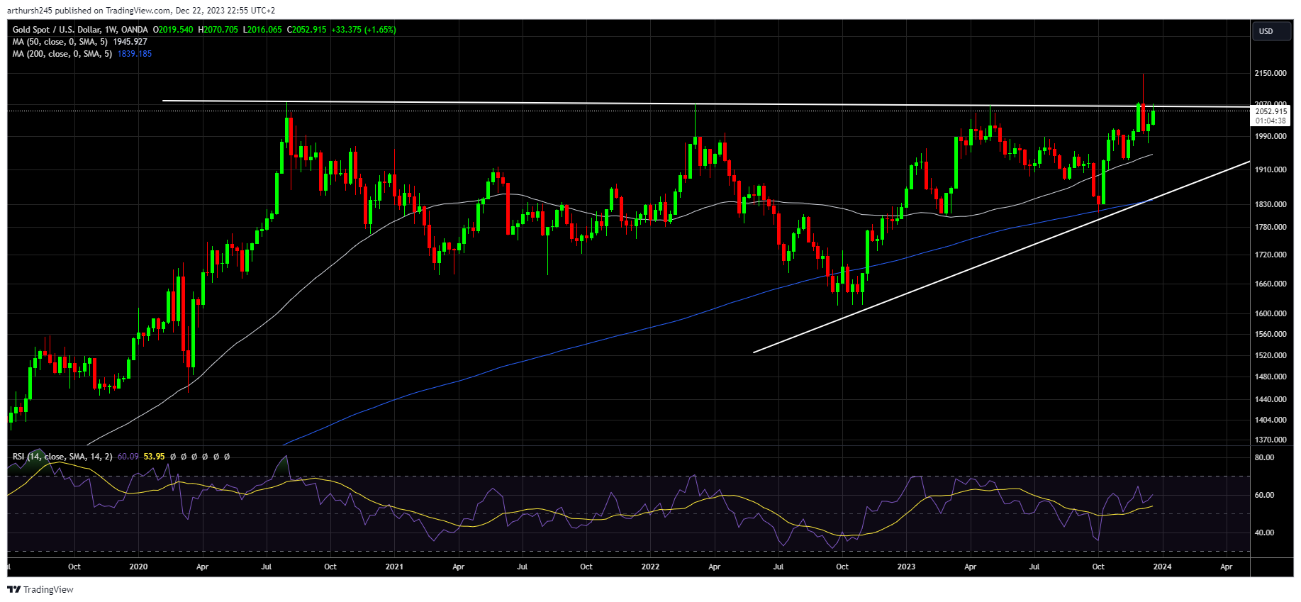 多重利好指出金价!FXEmpire:技术面出现上升三角形,2024年目标看向2500上方
