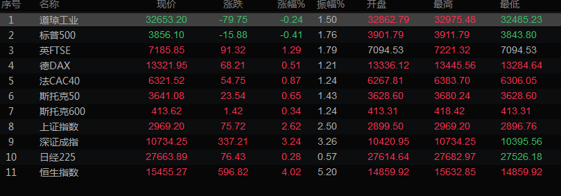 美股收盘情况:道琼斯工业指数下跌0.24%,至32653.2点;