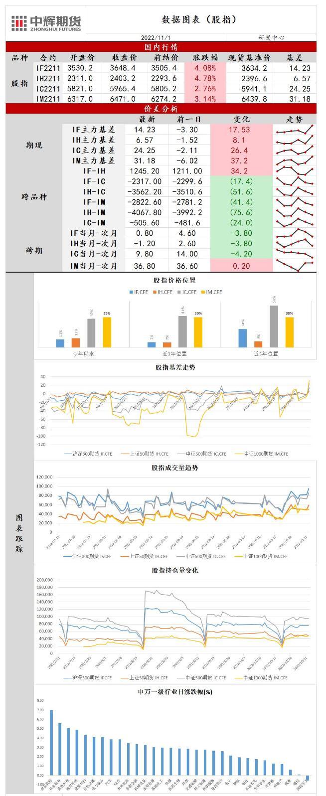 标题:中辉期货股指日报20221101:两市赚钱效应极好,指数全线上涨