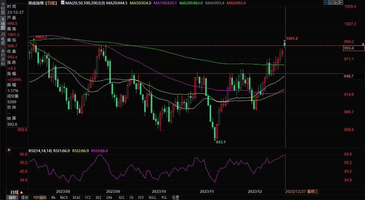 汇通财经APP讯——周二(12月27日),北京时间21:32,铂金连续最新报996.2美元/盎司,涨幅0.06%。