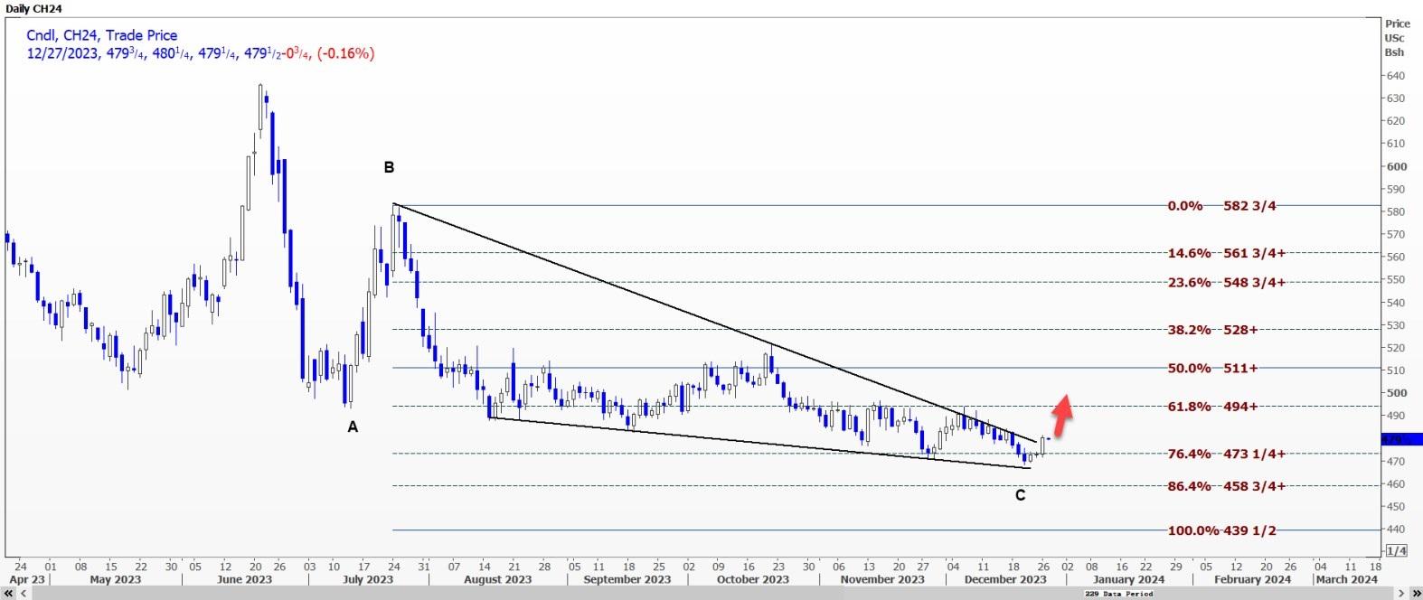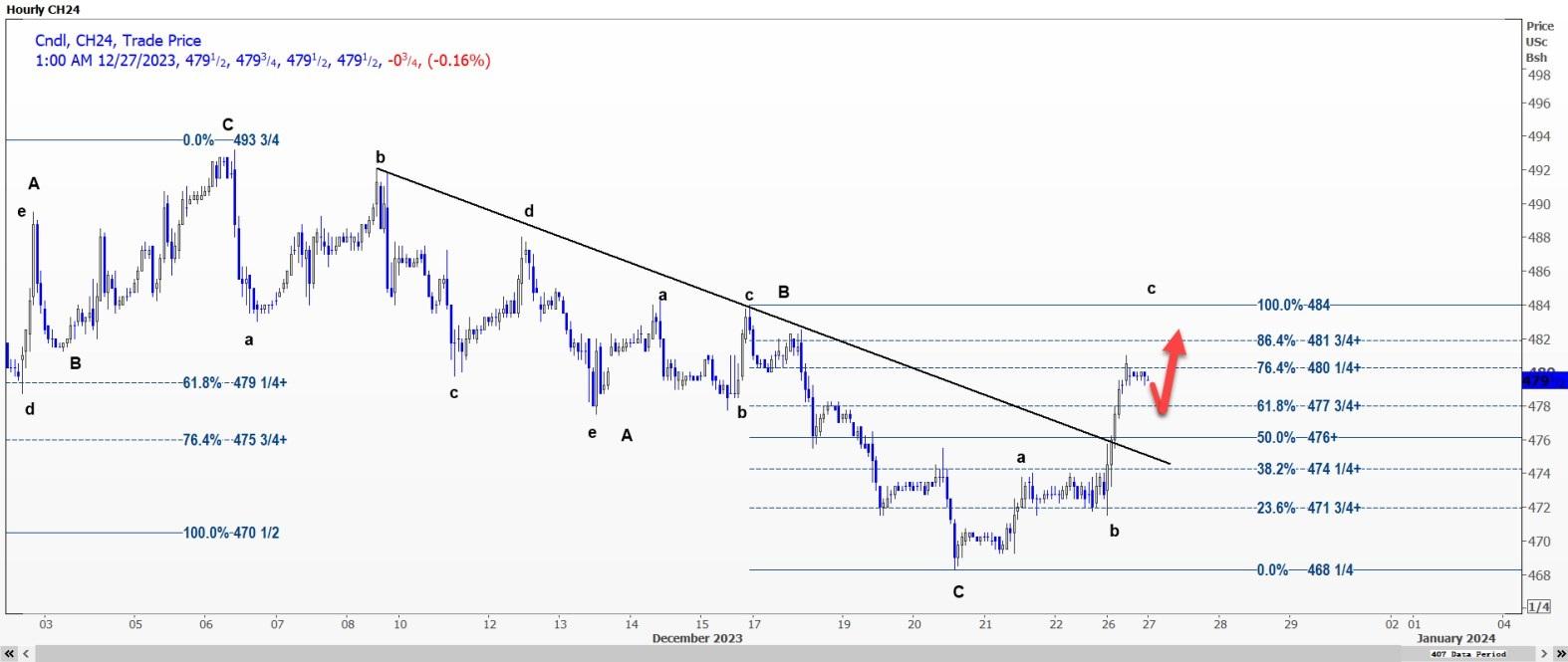 CBOT玉米小幅下跌后可能重新测试4.8025美元CBOT 3月玉米CH24可能会重新测试每蒲式耳4.8025美元的阻力位,突破该阻力位可能会打开通往4.8175美元至4.84美元区间的道路。