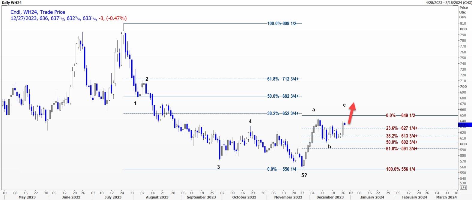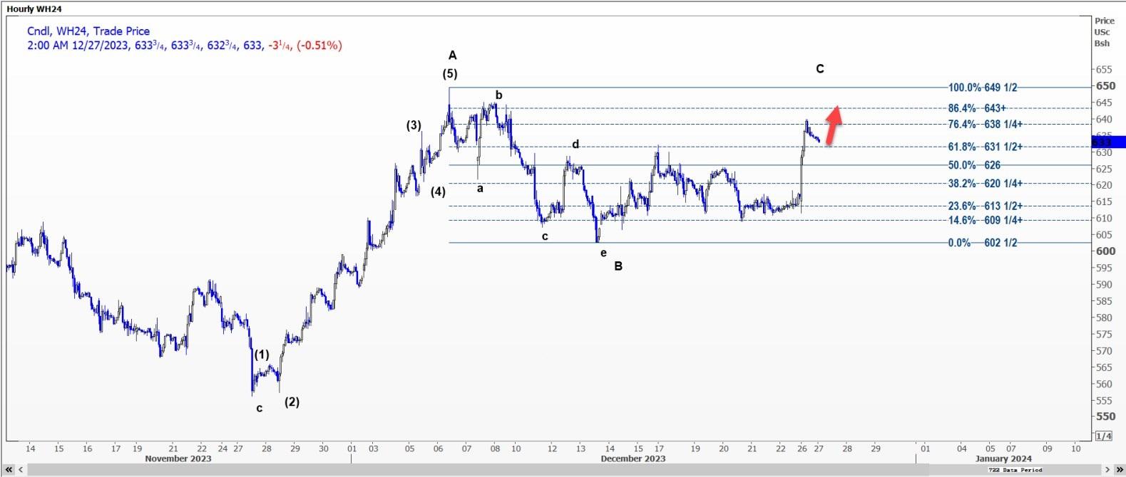 5.2875美元的C浪有可能已经提前结束。该合约可能首先测试4.94美元,突破该水平后可能上涨至5.11美元。