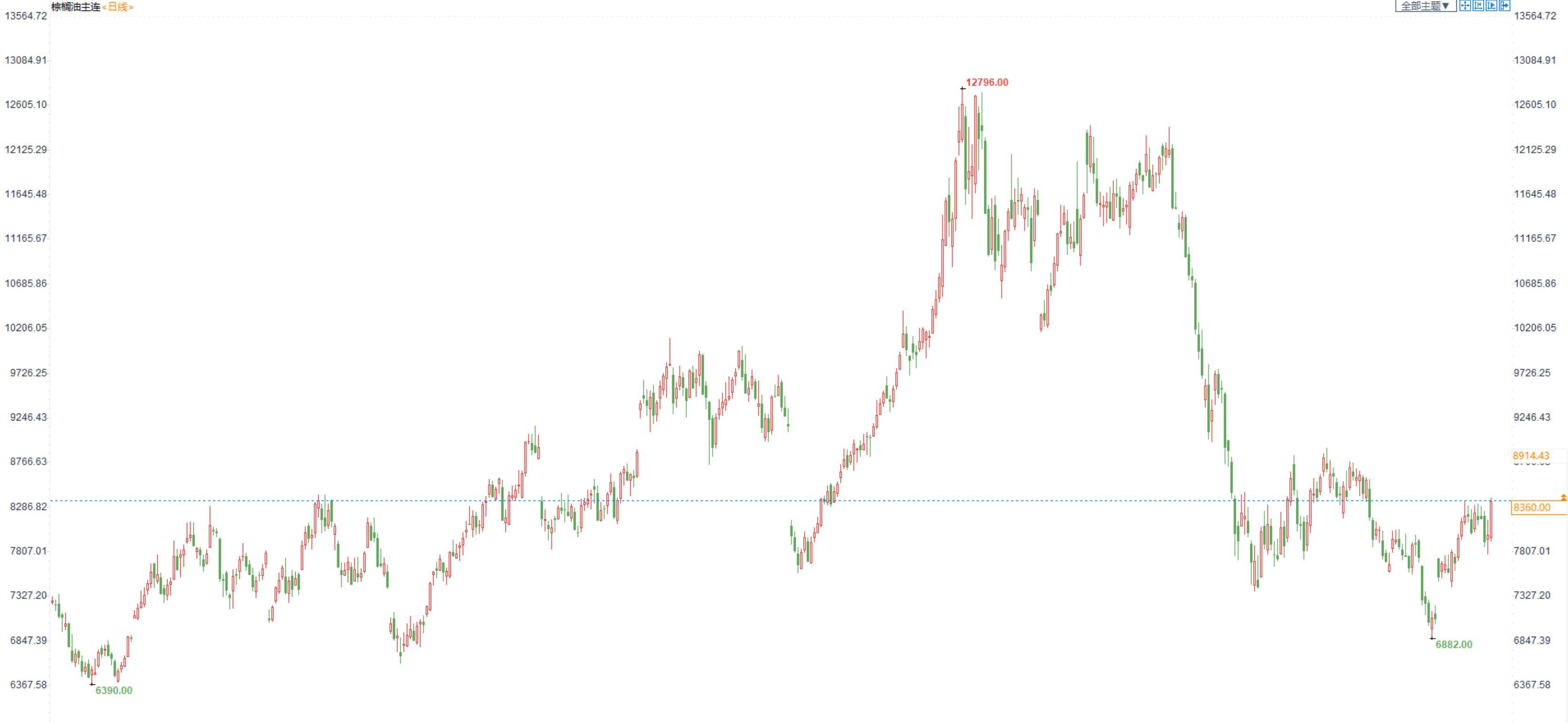 棕榈油2301合约日内涨4.45%,收盘8360元/吨;广州市场棕榈油8430元/吨。
