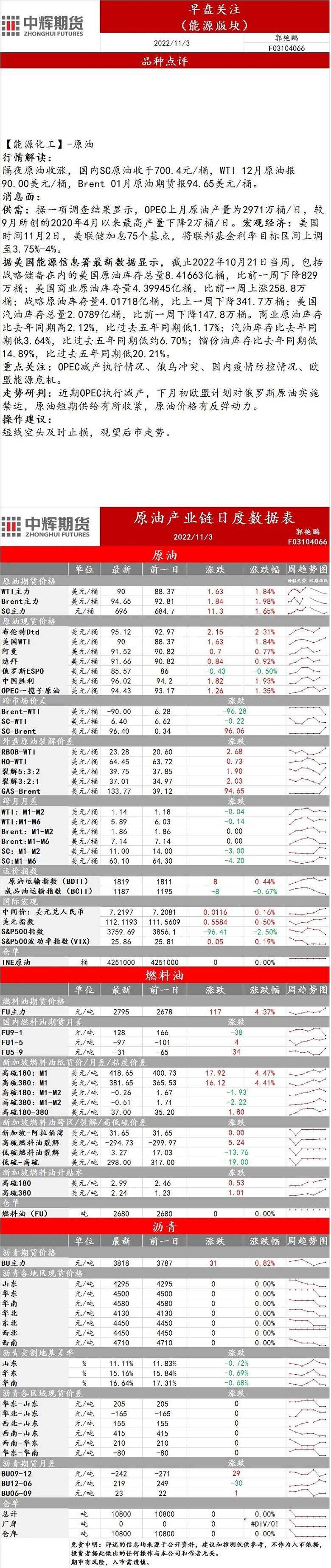 中辉期货能源早盘关注:有反弹动力,建议短线空头及时止损