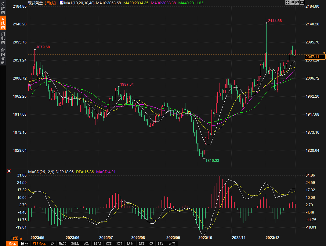 现货黄金的交投价格在2075美元附近,日内波动幅度在15美元左右。
