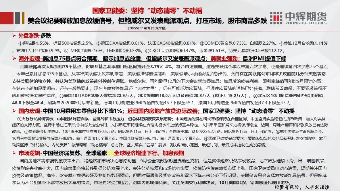 中辉期货宏观早报:鲍威尔又发表鹰派观点,打压市场,关注英银决议和美国10月非农