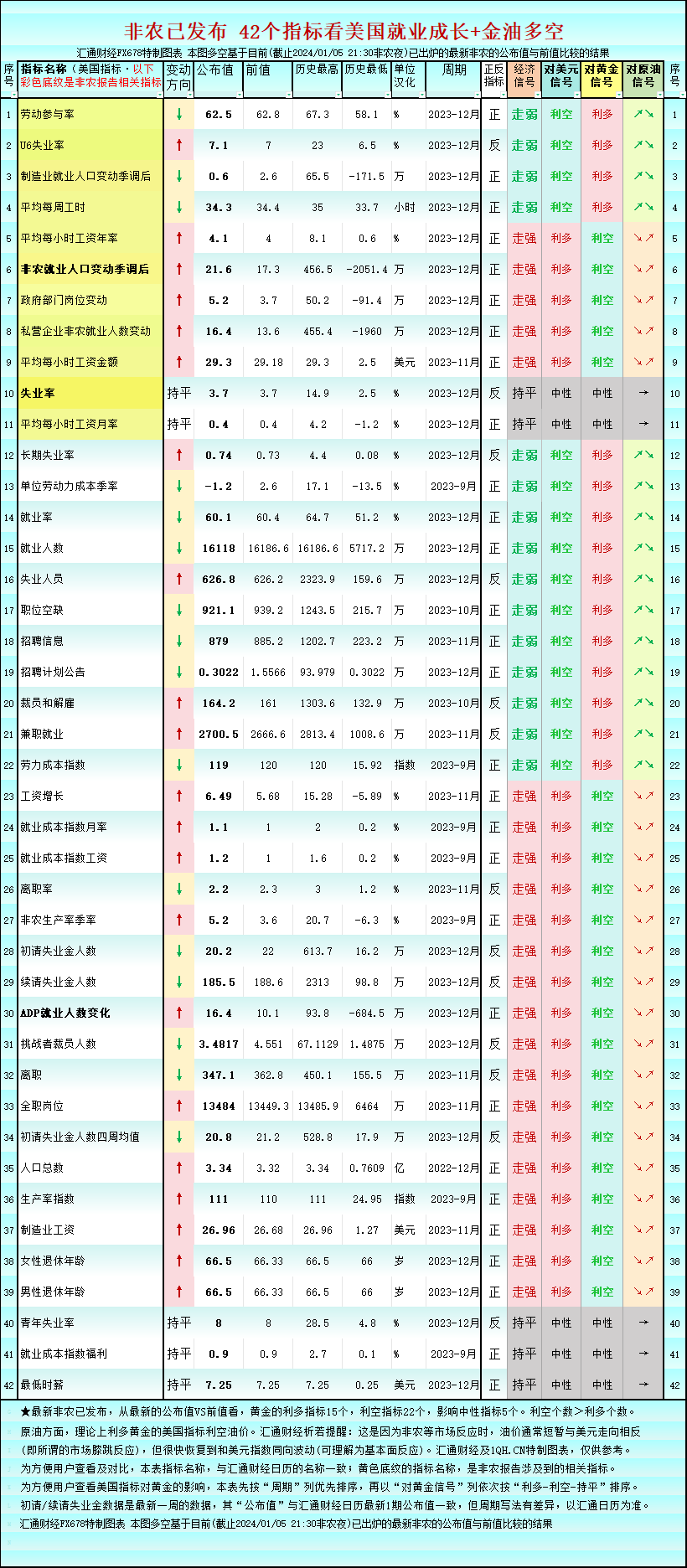 标题:一张图:42个指标看美国非农,利空黄金的指标22个
