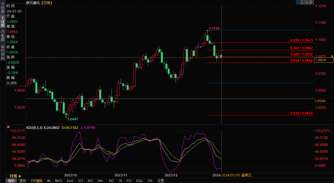 汇通财经APP讯——周五(1月5日),欧盘时段,欧元/美元交投于1.0927/26,跌幅0.16%;欧元主力交投于1.0959/58,跌幅0.18%。