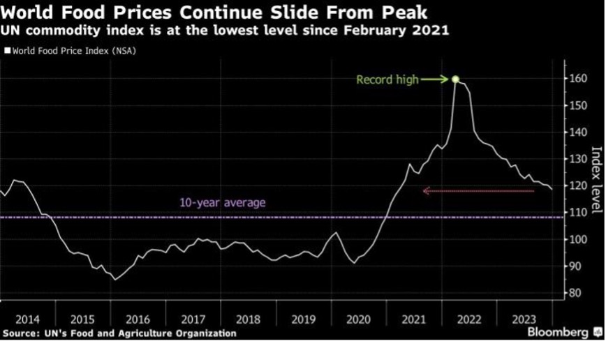 (世界粮食价格继续从峰值下滑)