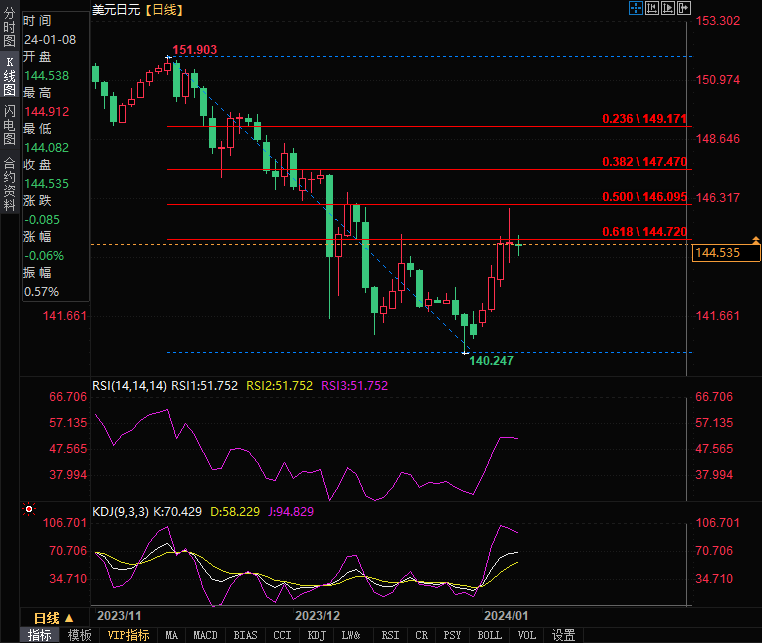 美元兑日元正酝酿反转?正测试145.00双底颈线