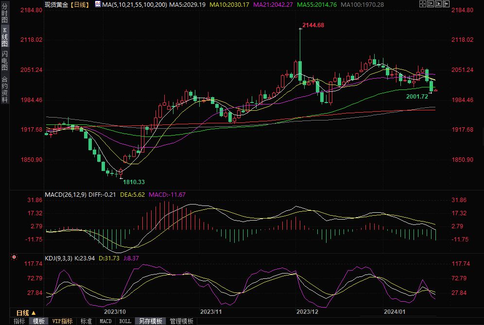 汇通财经APP讯——周三(1月17日),由于美国人口普查局公布了强劲的 12 月份零售销售数据,美国强劲的经济数据推动美国国债收益率上升,而交易员纷纷削减美联储降息押注,黄金遭抛售,跌破2010美元/盎司,逼近2000美元/盎司心理支撑位,最低触及2001.72美元/盎司,为12月14日以来新低,预计后期将面临更大压力。