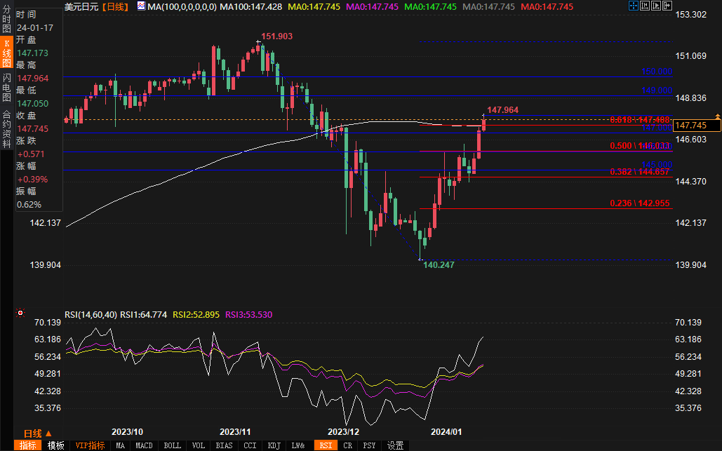 美元/日元连续第三天持续上涨,上涨至12月初以来的最高水平。在日本中部发生毁灭性地震的背景下,东京通胀率的下降和上周公布的疲弱工资数据确保了日本央行(BoJ)将推迟改变其极端鸽派政策立场的计划。这反过来又继续削弱日元,再加上一些后续的美元买盘,盘中将美元/日元货币对推高到接近148.00的整数。