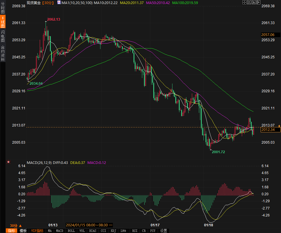 现货黄金30分钟走势图 图源:)