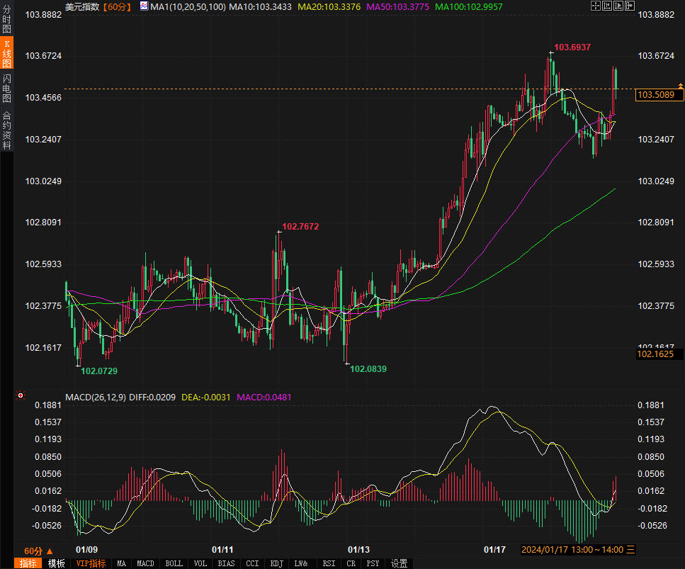 美元指数短线走高17点。