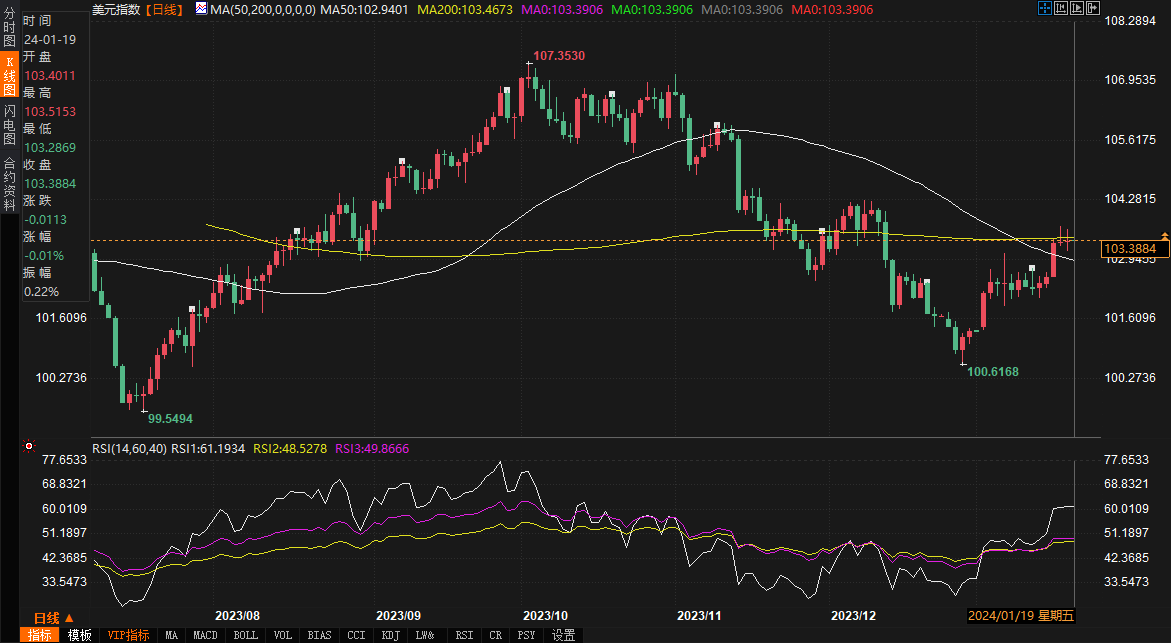 如果美元指数能够有效突破该区域,那么在上行路上的第一个阻力位是104.44,以100日移动均线的形式出现。如果行情继续走高,那么没有什么能阻止
