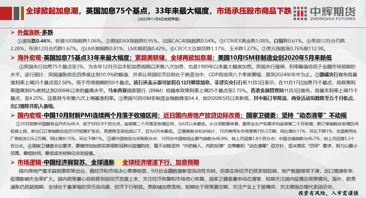 中辉期货宏观早报:美联储加息落地,短期处于政策真空期,关注产业上下游博弈