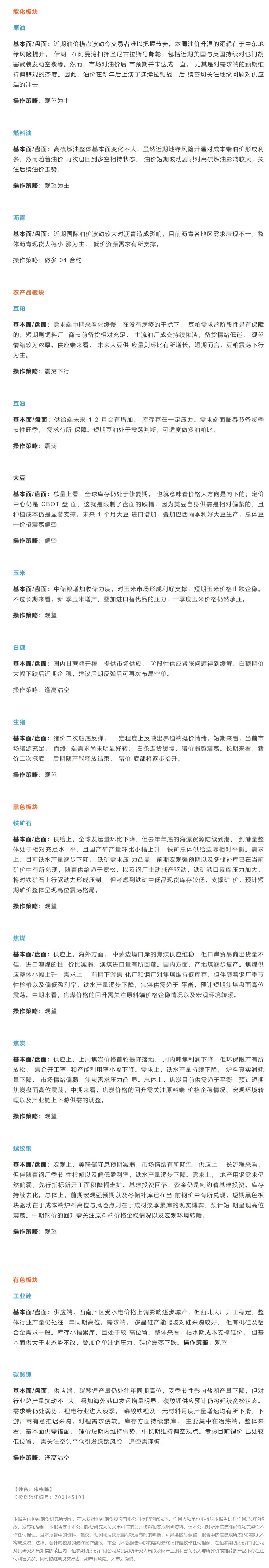 标题:恒泰期货1月22日早盘交易策略