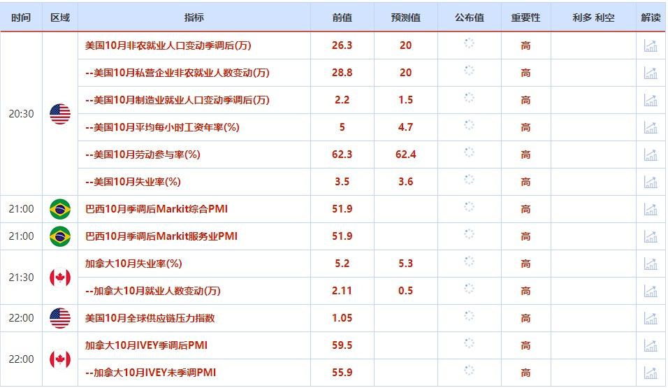 市场现在关注周五公布的美国10月非农就业报告,根据路透调查,华尔街经济学家预测将新增就业岗位20万个,失业率料为3.6%。