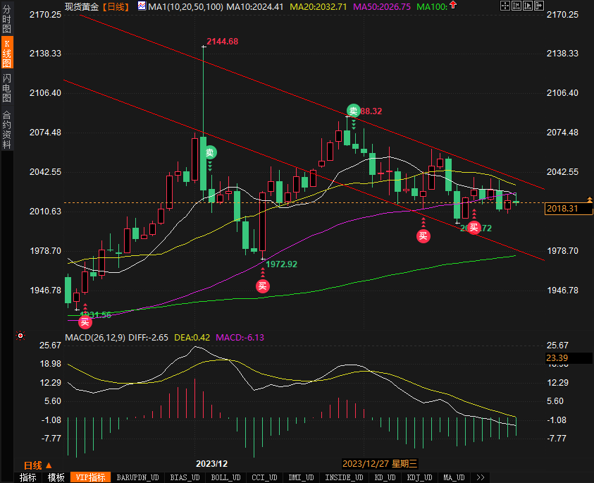 经济环境挤压金价走势去年12月美国价格适度上涨,使年度通胀连续第三个月保持在3%以下,这可能使美联储有望在今年开始降息。数据显示,美国经济在第四季度增长速度超出预期。由于美国经济表现出韧性,市场调整了对美联储的押注,推动美元复苏,推动金价走低。由于美国 12 月份核心个人消费支出 -价格指数(PCE) 报告显示价格压力增长速度低于市场参与者的预期,金价预计将走出困境。年度基本通胀数据从预期的 3% 和前值的 3.2% 放缓至 2.9%。月度核心PCE价格指数数据增长0.2%,符合市场参与者的预期。11月份经济数据小幅上涨0.1%。