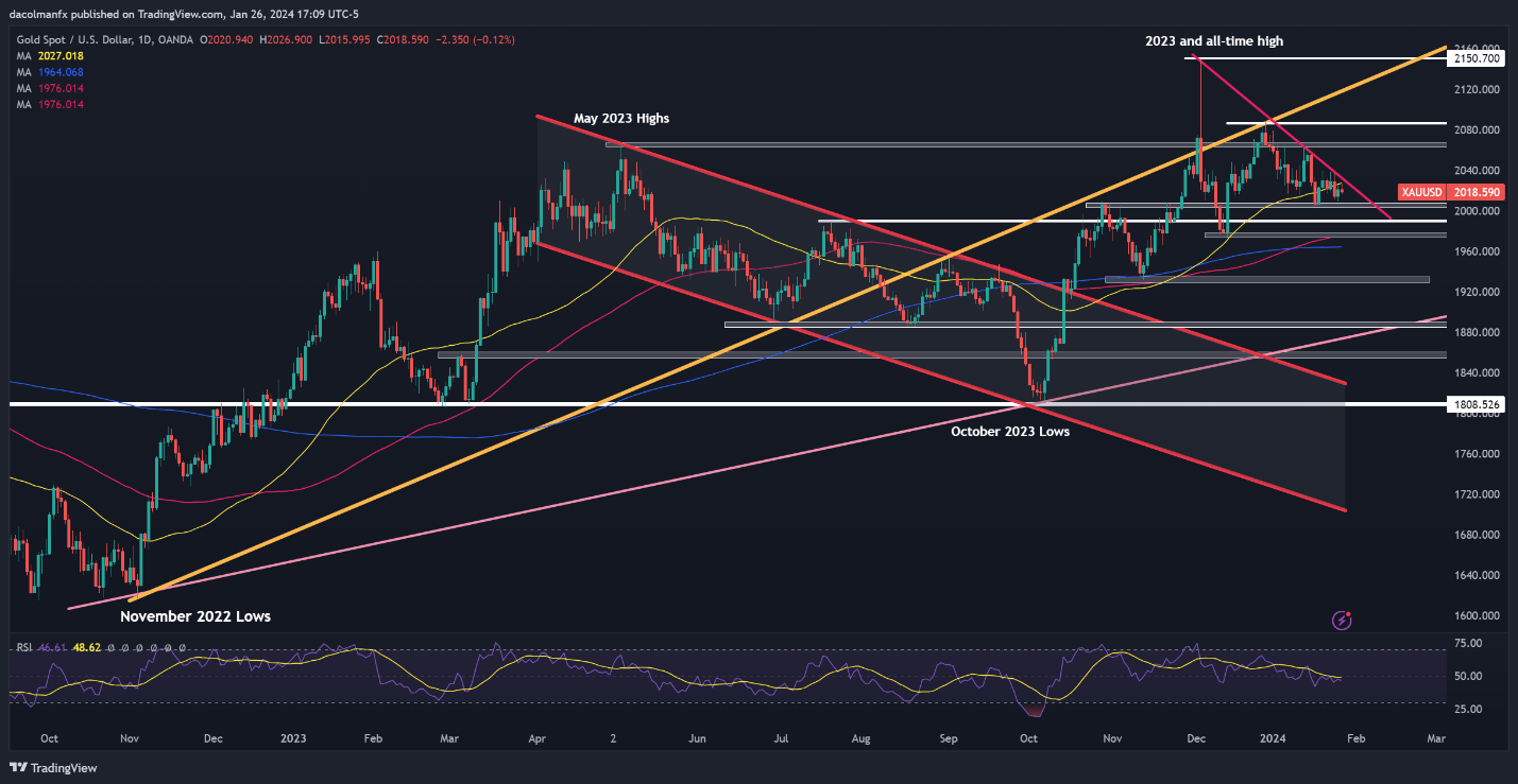 降息预期“渐行渐远” 金价将被拖回2000美元关口上周一(1月22日)美市早盘,由于美联储3月份降息的希望消退,金价下跌,失守2020美元关口。而交易员则等待美国关键经济数据和主要央行政策会议。