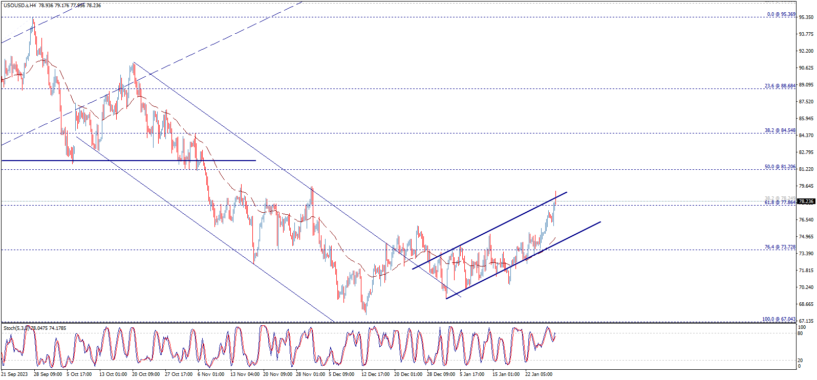 EMA50继续支持看涨观点,阻力位置在78.70。考虑到未能巩固77.86以上将使价格处于负面压力之下,目标是在任何新的上升尝试之前测试日内看涨通道的支撑线74.65附近。