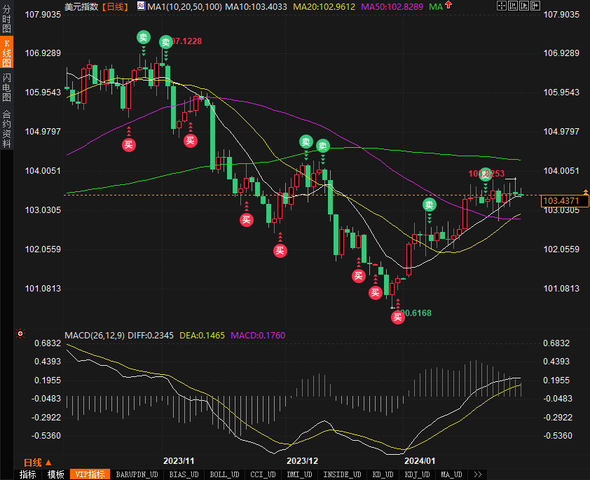 美元指数稳定在103.50附近。10年期美国国债收益率持续下跌,下跌4个基点,至4.051%。