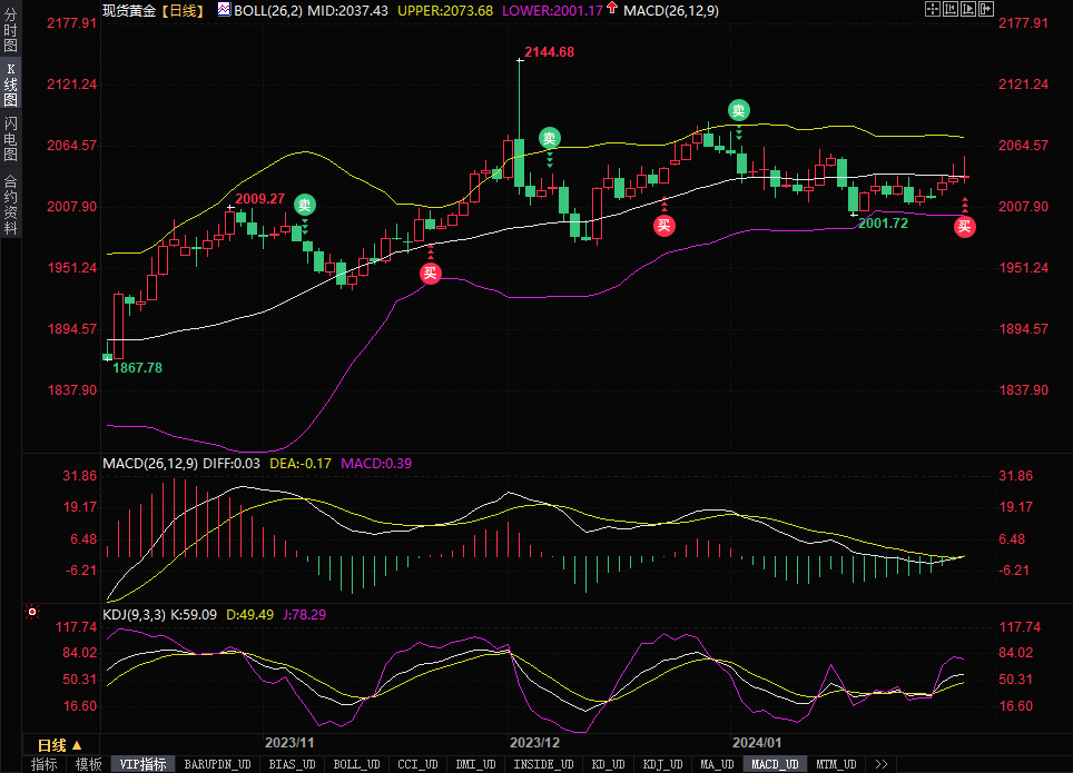 现货黄金回吐了早些时候的涨幅,从2050关口附近一度跌至2030附近,周三收报2039.05美元/盎司,接近持平。