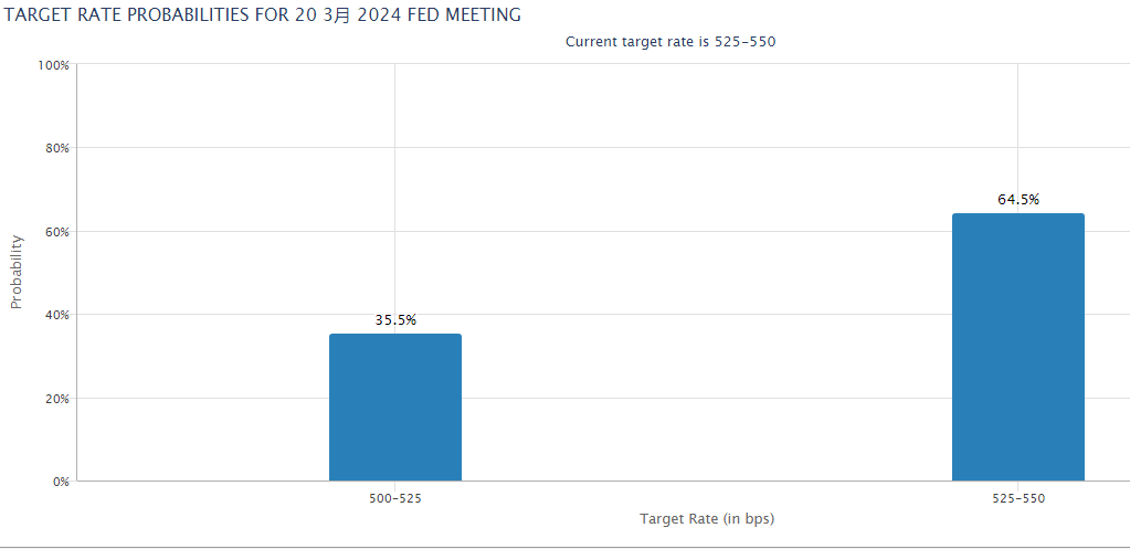 利率期货显示,目前市场预计美联储3月份降息的概率下降至35.5%,前一天约为48%,而12月份时一度高达94%。