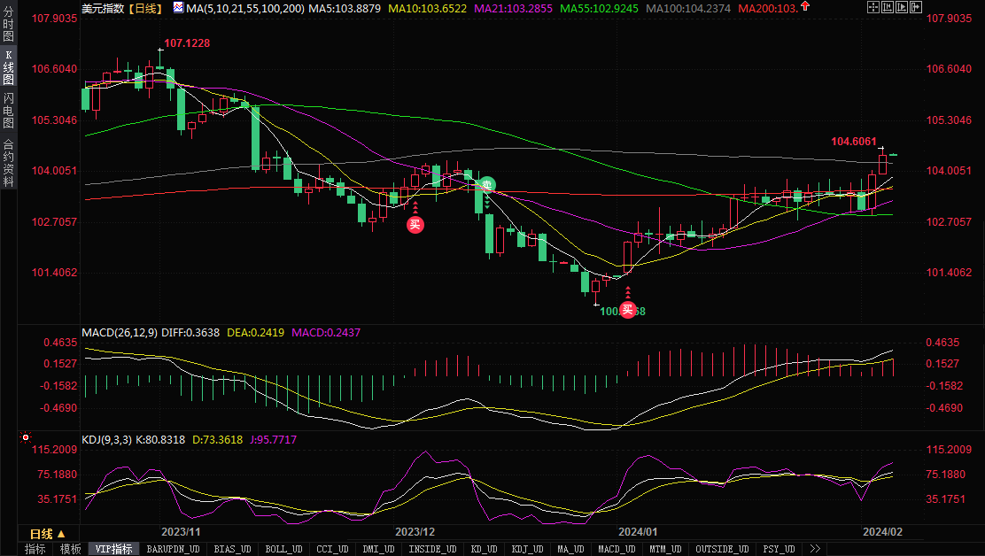 美元指数周一上涨0.5%,接近三个月高位,盘中最高触及104.60,为11月14日以来新高,收报104.45,收复了100日均线,站在了所有均线上方,使得黄金对持有其他货币的投资者来说更加昂贵,10年期美债收益率也创下一周新高,收报4.162%,站在了200日均线上方。