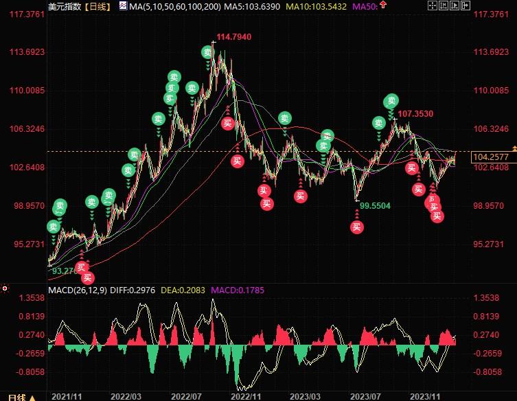 美元指数2月突破日线一目云区,并上看100日移动均线104.22。