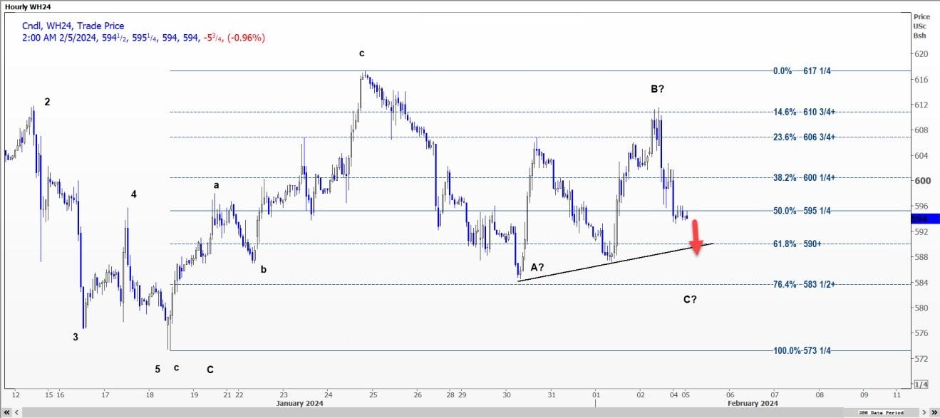 随着5.9525美元的支撑被打破,小麦可能会首先跌至5.90美元。此次下跌的性质尚不清楚,这可能是自1月30日低点5.8450美元以来的上升趋势的一部分,也可能是自6.1725美元以来的下降趋势的一部分。