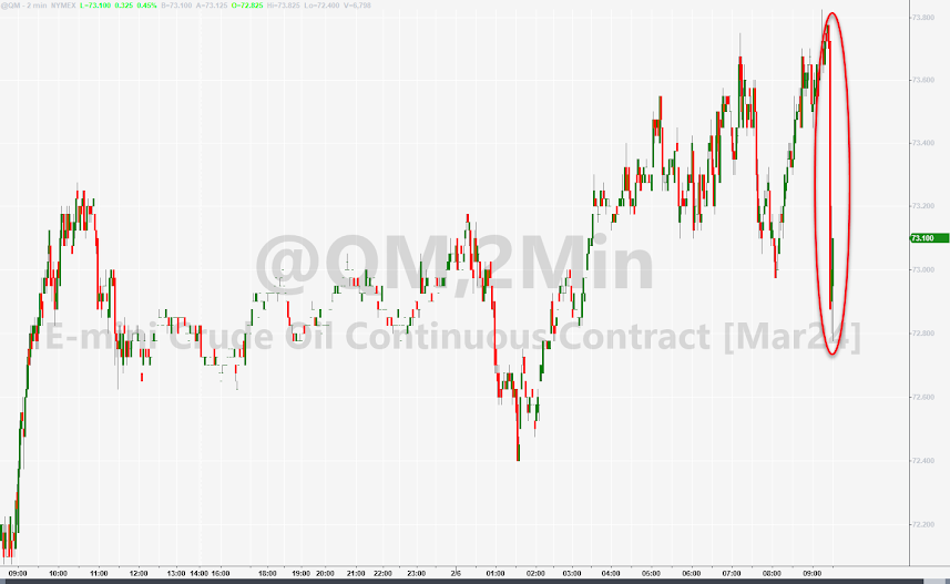 卡塔尔官员打破了以色列与哈马斯停火谈判的沉默,声称哈马斯在谈判中作出了“积极”的回应。这一声明立即导致了另一次由程式化交易驱动的原油价格短线跳水,就像上周半岛电视台短暂报道哈马斯对以色列停火条件做出了“积极回应”一样,然后删除了该推文。