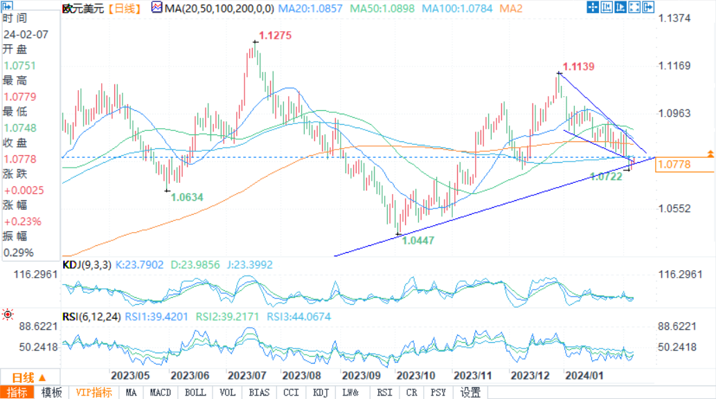 从略高于1.0700的关键底部反弹,价格接近1.0780的密集阻力带。如果多头在未来几天突破这个技术阻力位,我们可能会看到它向200日简单移动均线1.0840移动。