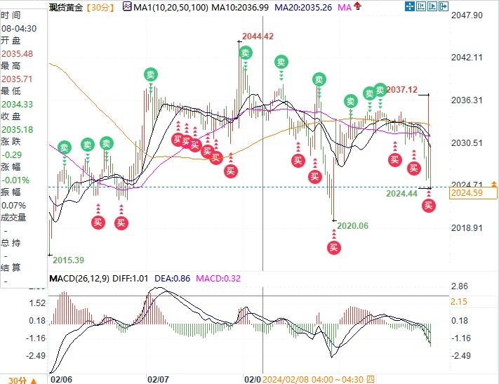 现货黄金30分钟走势图 来源:易汇通)