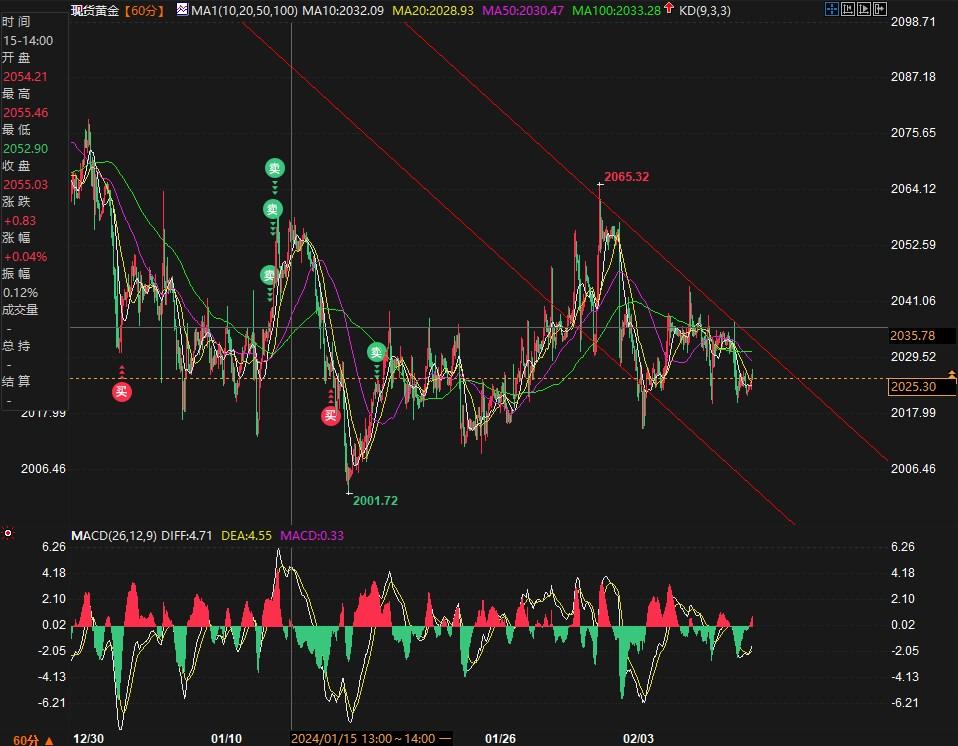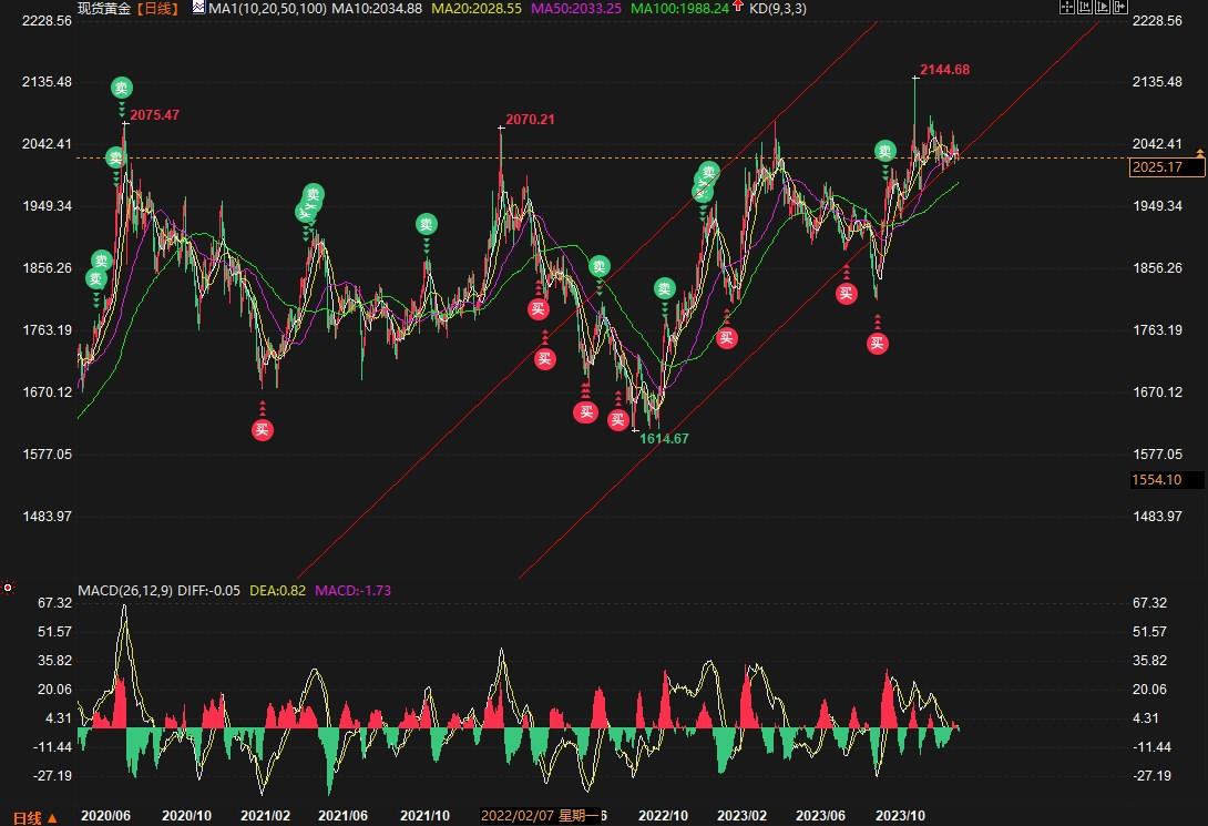 金银技术分析:黄金多头目标2064空头目标1981,白银需突破23美元