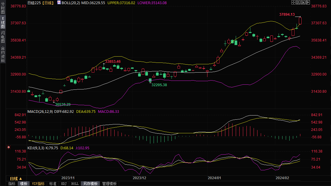 日经225指数大涨2.5%,一度创1990年2月底以来新高至37894.13点。