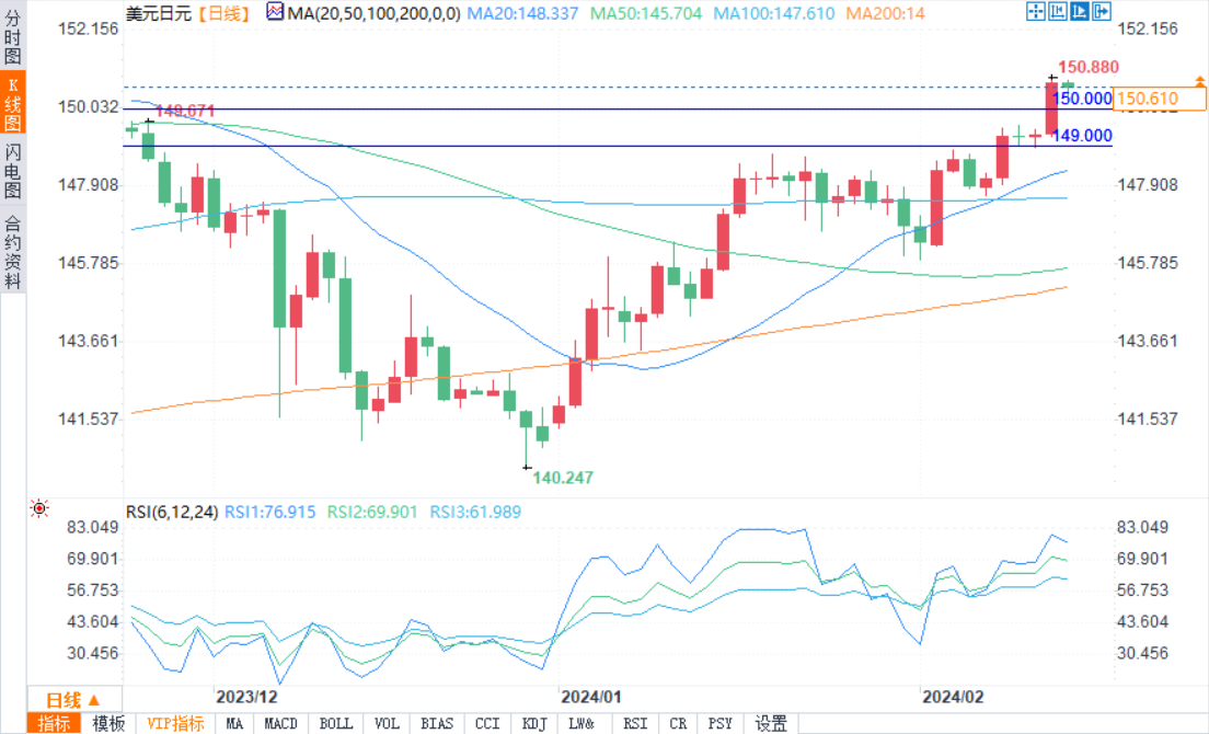 周三(2月14日),日元兑美元逐步下跌后小幅反弹,盘中报150.565,跌幅0.13%。日元主力报0.6675,涨幅0.17%。日元兑美元汇率盘中跌至150附近,这让日本央行更加复杂,因为日本央行认为这是自2007年以来首次加息的最佳时机。