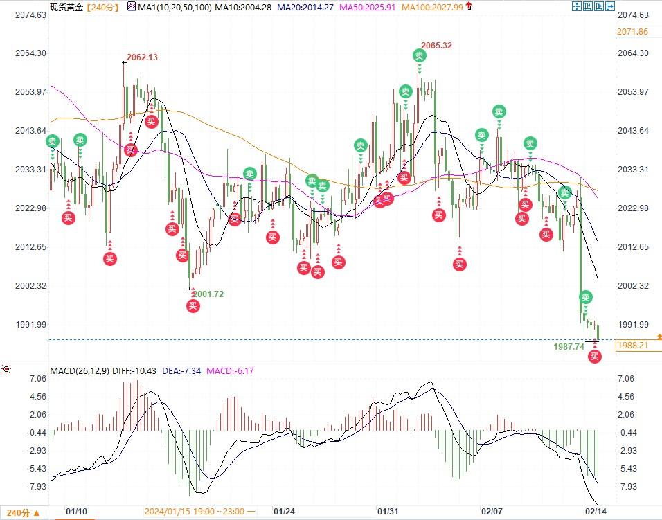 汇通财经APP讯——鉴于美国通胀数据降低了美联储宽松政策的预期,金价陷入“疗伤”状态。美元涨势目前暂时停滞,但预计将出现新一轮上升。在技术面呈现下跌趋势的情况下,金价似乎面临着“逢反弹即卖出”的交易策略。若金价日收盘价低于1993美元/盎司,黄金价格或将进一步遭受压力。