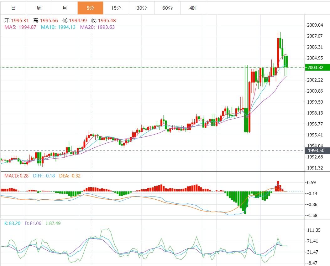 现货黄金5分钟走势图)