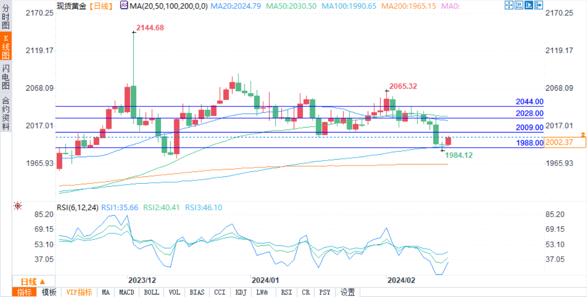 标题:黄金、白银价格走强,现货黄金反弹至2000美元以上