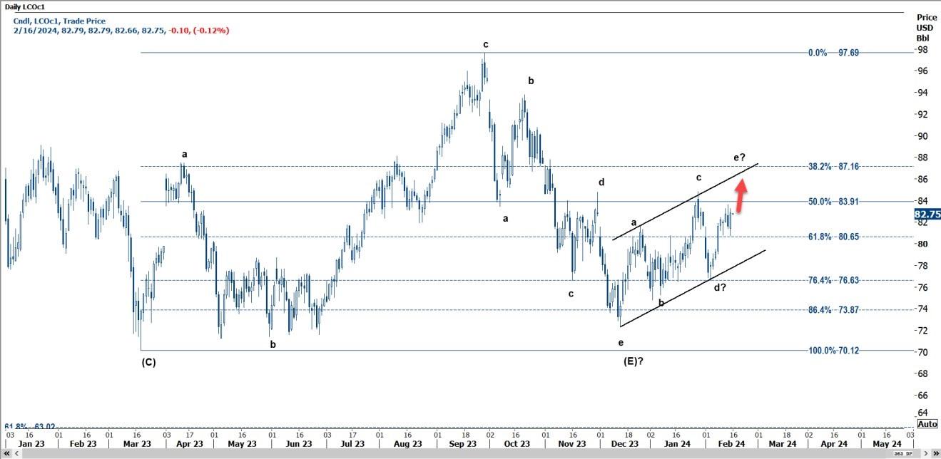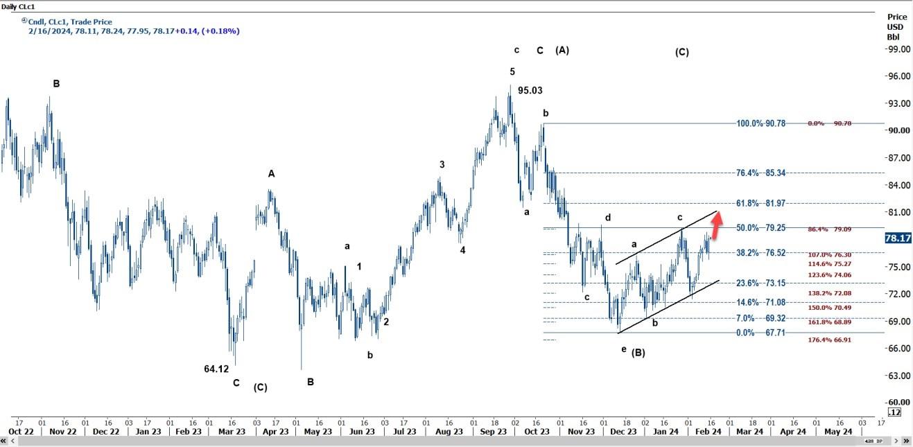 复苏表明从76.62美元开始的上涨趋势将持续。在C浪的推动下,趋势可能会延伸至84.35美元。