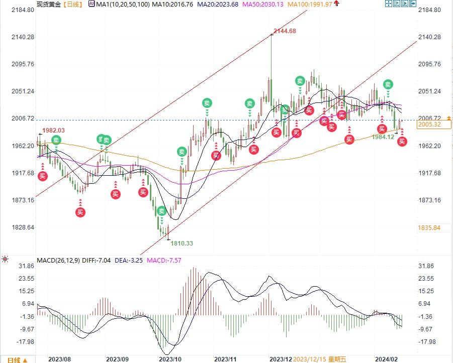 考虑到当前的经济指标以及美联储官员的鹰派立场,黄金的短期前景相对悲观。本周四(15日),美国1月份零售销售数据超预期降温,推动黄金价格回升。同时,初请失业金人数的减少也表明美国就业市场持续走强。