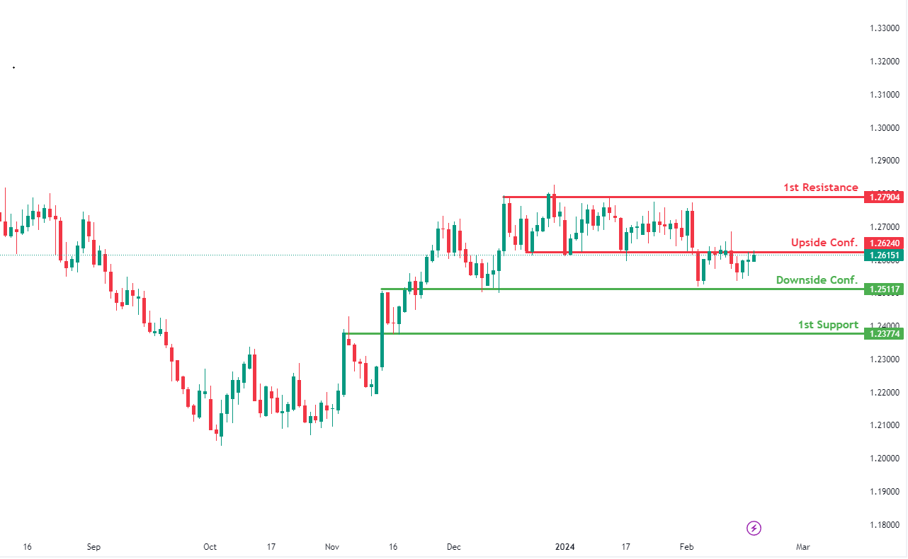 价格上行的确认位位于1.2624,也是一个重叠阻力位。这一水平是上行走势可能加强的一个点,可能会推动价格走高。