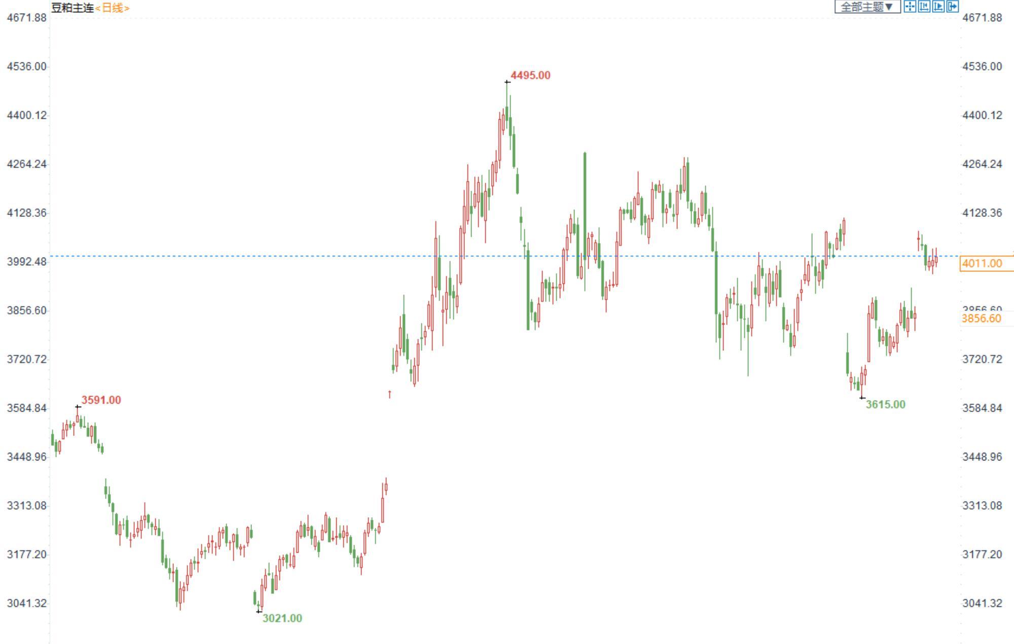 豆粕2301合约日内涨0.28%,收盘价4011元/吨,现货张家港43%蛋白豆粕4915元/吨。