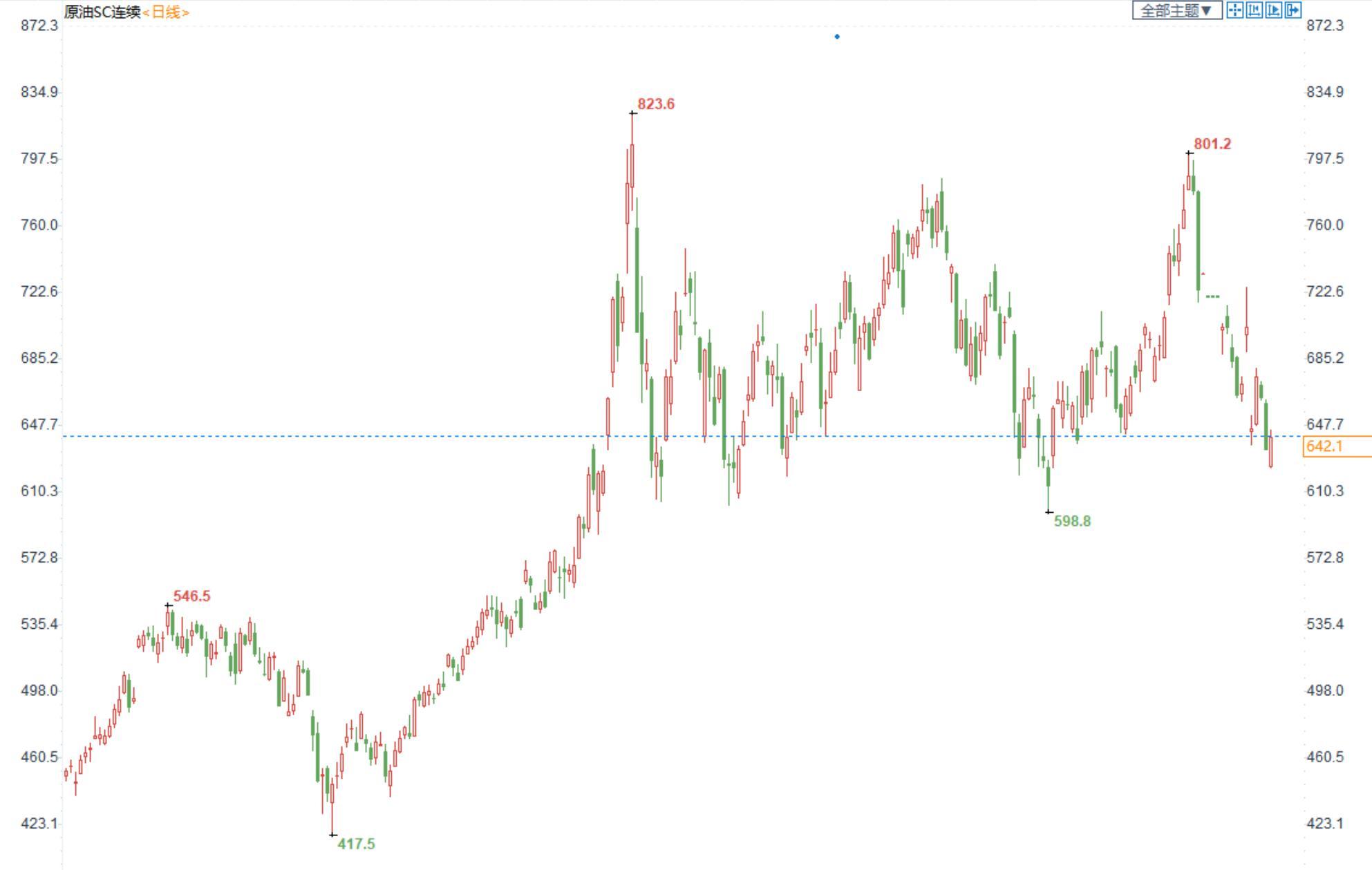 期货市场,布油在92美元整数关口震荡整理,小幅收涨;国内SC2211合约收盘价为642.1,小幅收涨。