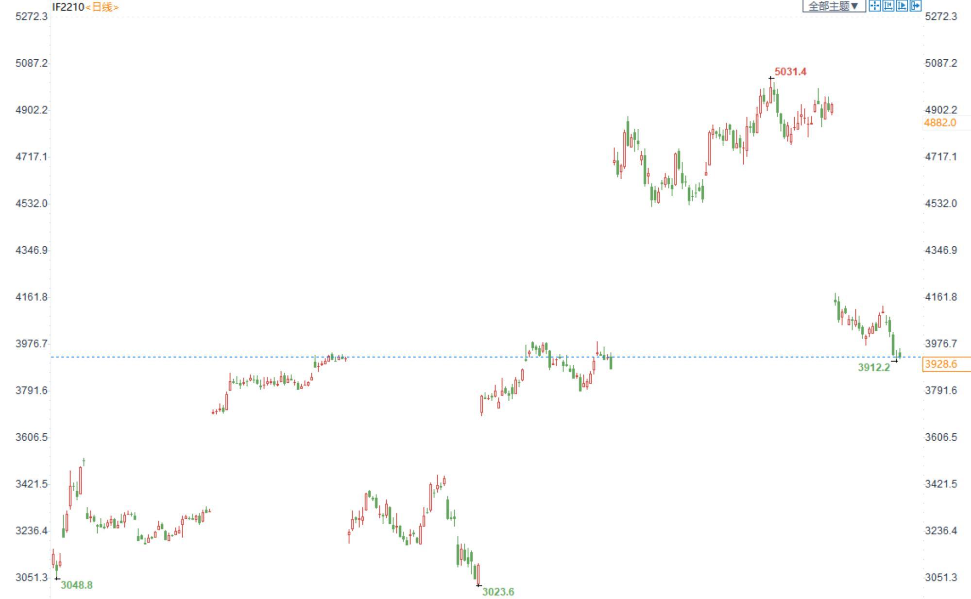 【今日行情】四大期指涨跌互现。IH2210收盘价为2674.6,收跌0.22%;IF2210收盘价为3928.6,收涨0.08%;IC2210收盘价为5918.6,收涨0.83%;IM2210收盘价为6388.8,收涨1.44%。今日市场跳空高开,以弱势震荡为主,上证综指稳在3100点上方。风格方面,主线重回成长赛道板块,新能源、有色金属板块涨幅居前,房地产和大金融连续三个交易日回调。市场再度缩量,总成交额降至6517.85亿元,再创新低,创2020年10月底以来新低。