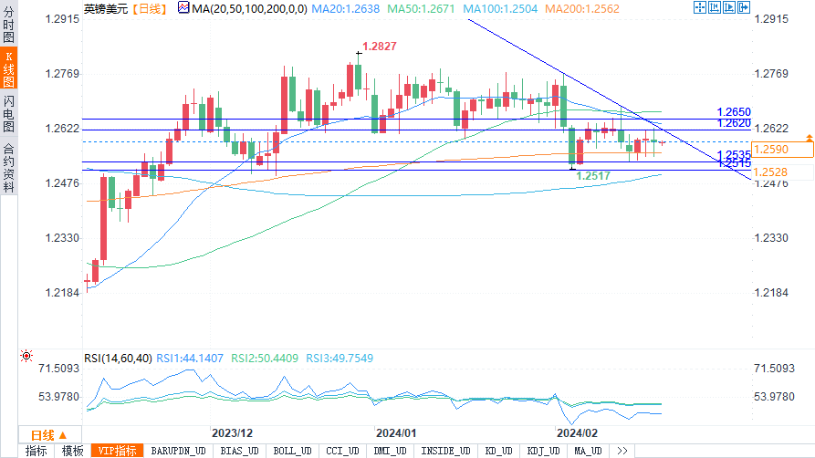 北京时间16:26,英镑主力报1.2588,跌幅0.17%。